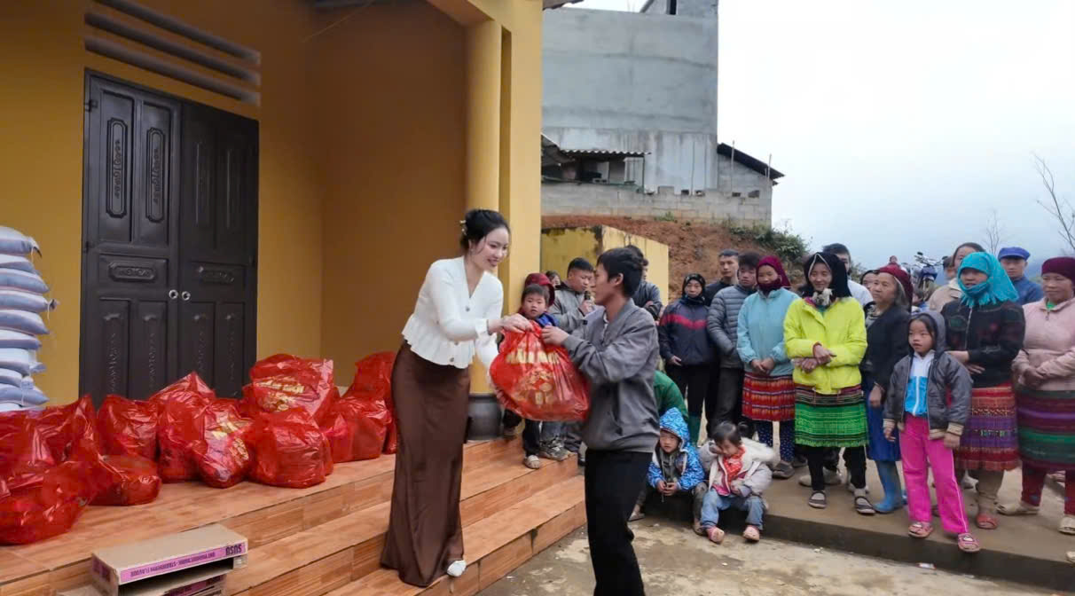 Tại chương trình, anh Cường và chị Phương đã trao 80 suất quà Tết gồm bánh kẹo tới các hộ dân trong thôn. Cùng với đó, nhiều nhu yếu phẩm thiết yếu như gạo, mì tôm… cũng được trao tận tay người dân, với mong muốn hỗ trợ phần nào sinh hoạt hằng ngày, giảm bớt khó khăn trong cuộc sống.