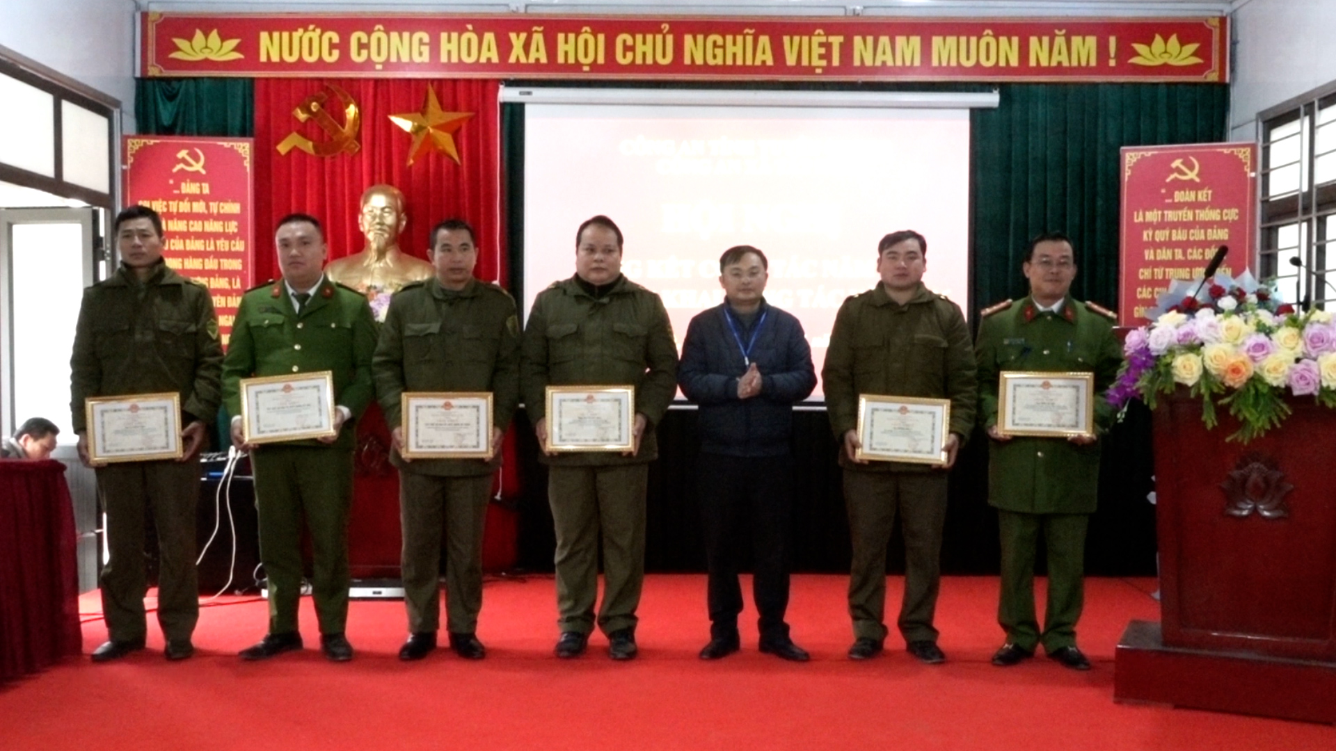 Đồng chí Nguyễn Văn Lưu, Chủ tịch UBND xã Tát Ngà trao giấy khen cho các tập thể, cá nhân có thành tích tiêu biểu trong công tác bảo đảm an ninh, trật tự năm 2025.