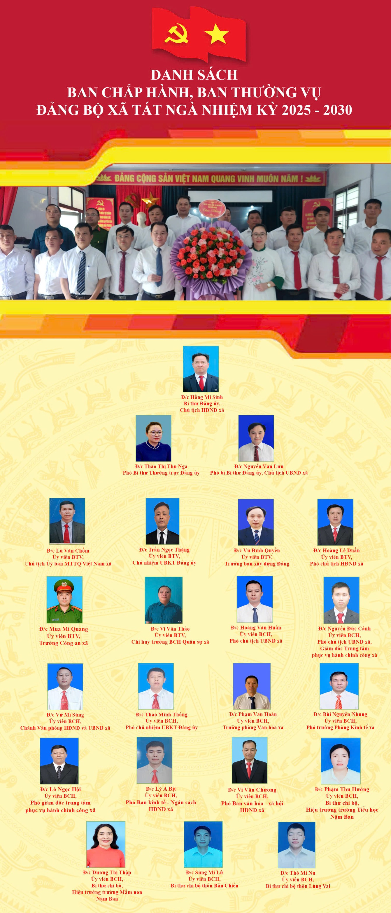 DANH SÁCH BAN CHẤP HÀNH, BAN THƯỜNG VỤ ĐẢNG BỘ XÃ TÁT NGÀ NHIỆM KỲ 2025 - 2030