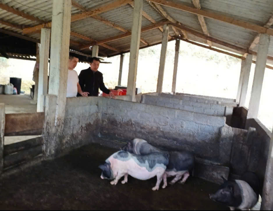 Cán bộ địa phương kiểm tra mô hình chăn nuôi từ nguồn vốn tín dụng chính sách