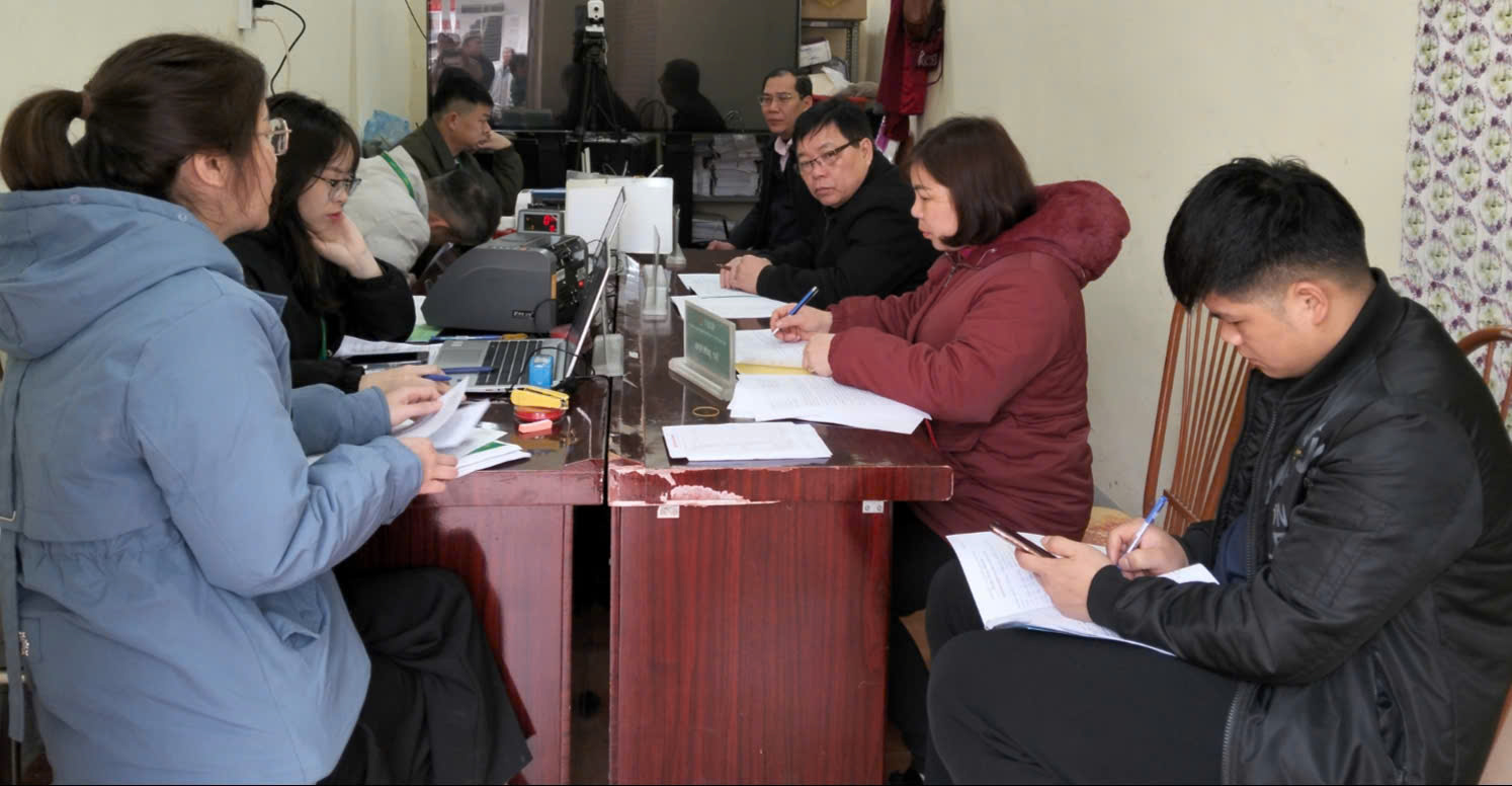 Cán bộ Ngân hàng Chính sách xã hội phối hợp với chính quyền địa phương tổ chức giao dịch, quản lý nguồn vốn tín dụng chính sách tại xã Tát Ngà.