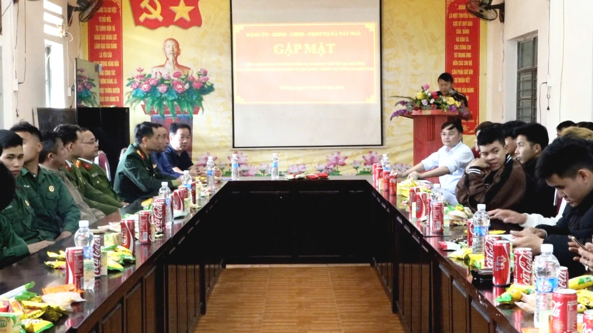 Tham dự buổi gặp mặt có đồng chí Hồng Mí Sinh – Bí thư Đảng ủy xã; đồng chí Nguyễn Văn Lưu – Phó Bí thư Đảng ủy, Chủ tịch UBND xã; cùng các đồng chí lãnh đạo HĐND, UBND, Ủy ban MTTQ, đại diện các ban, ngành, đoàn thể, thành viên Hội đồng Nghĩa vụ quân sự xã; các quân nhân xuất ngũ và thanh niên chuẩn bị lên đường nhập ngũ năm 2026.