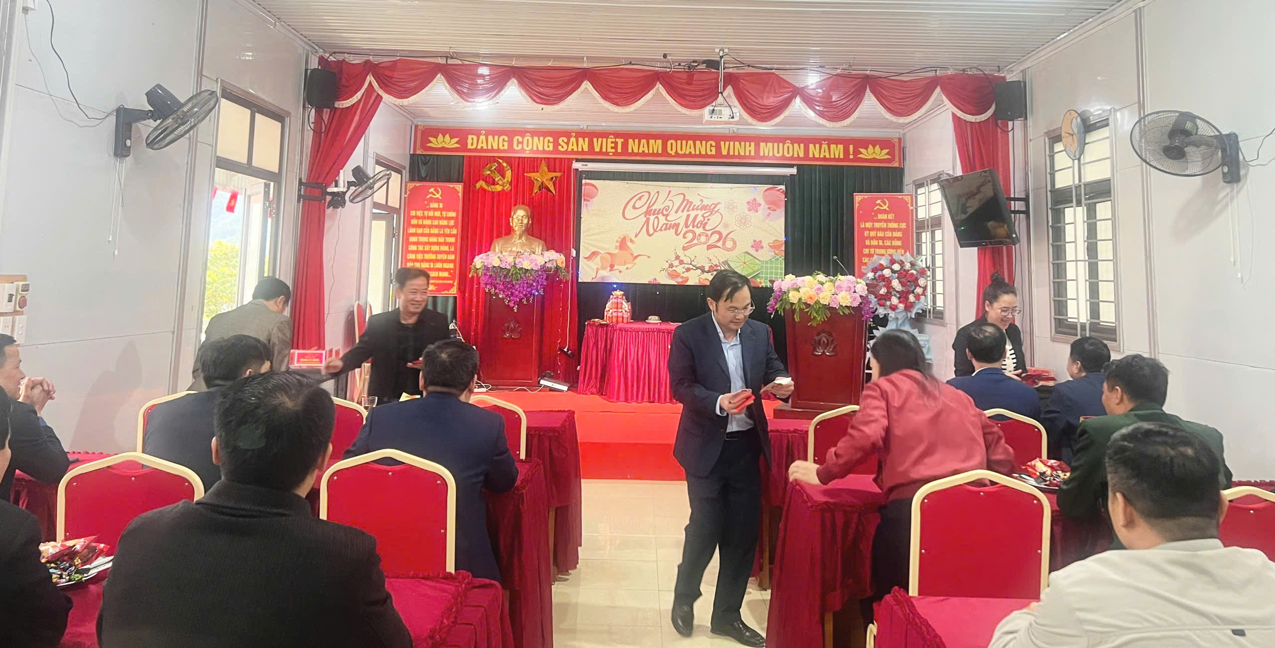 Trong không khí phấn khởi những ngày đầu năm, đồng chí Hồng Mí Sinh, Bí thư Đảng uỷ xã, thay mặt Thường trực Đảng uỷ gửi lời chúc năm mới an khang, thịnh vượng, sức khỏe, hạnh phúc, thành công tới toàn thể cán bộ, công chức, người lao động và gia đình; đồng thời ghi nhận, biểu dương tinh thần trách nhiệm, sự nỗ lực của tập thể trong thực hiện nhiệm vụ chính trị, phát triển kinh tế - xã hội, bảo đảm quốc phòng - an ninh trong năm qua.